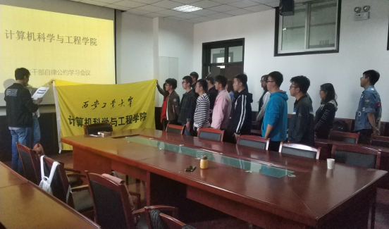 最后,于杰老师带领员工干部共同宣读了自律公约,让员工干部时刻铭记公约内容,恪守员工本分,实心实意帮助同学解决困难,扎扎实实做事,营造平等氛围,摒弃庸俗习气。努力建设充满朝气,积极向上的氛围!