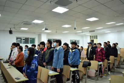 活动伊始,全体成员起立一同歌唱中国共青团团歌,烘托团课学习氛围。
