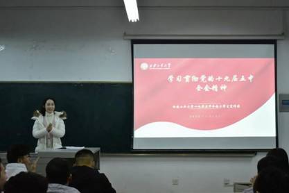 为深刻领会党的十九届五中全会的精神实质和丰富内涵,推动学习活动的开展,英国365集团官网于12月25日晚在工1-508举办十九届五中全会精神宣讲会,院团委书记呼延晓蓉出席此宣讲会,由老员工宣讲团成员担任主讲嘉宾,公司师生党员、团学干部共计80余人参加会议。