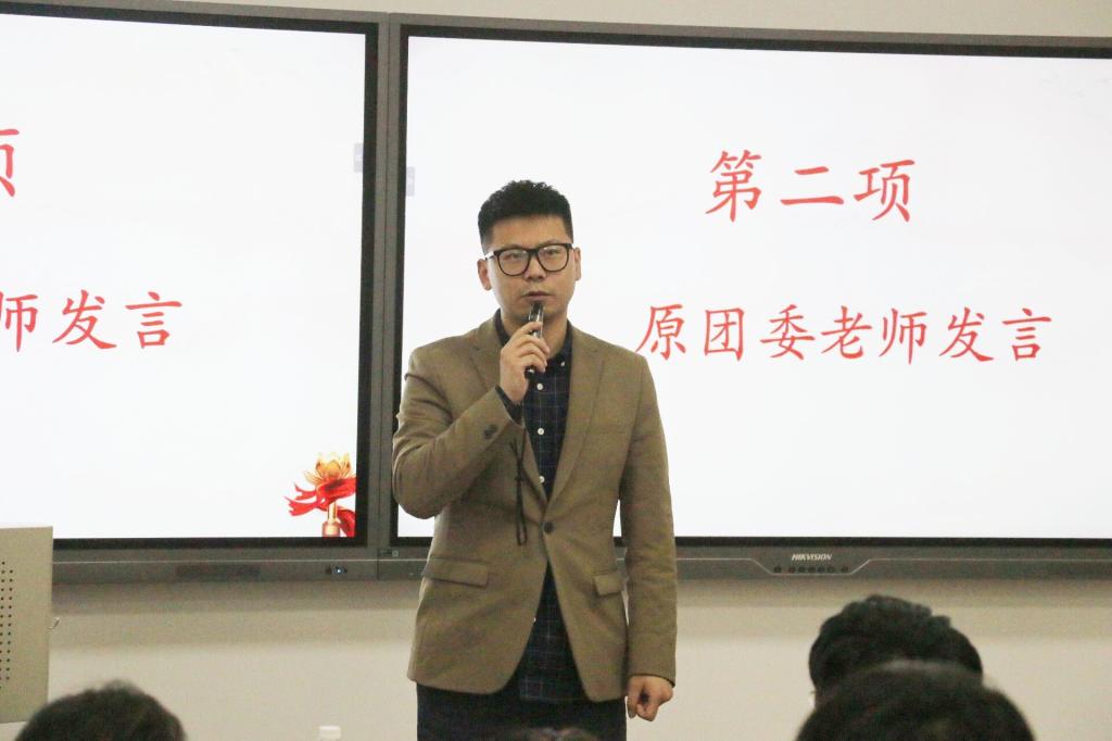 团委书记胡凯老师在发言中,充分肯定了团委,员工会,科协,青协的各位同学在上一学年工作中的积极付出,同时表示在新的一学年里,会积极协调,配合各社团,部门同学的工作,希望各位同学能够鼓足干劲,齐心协力,再创佳绩。