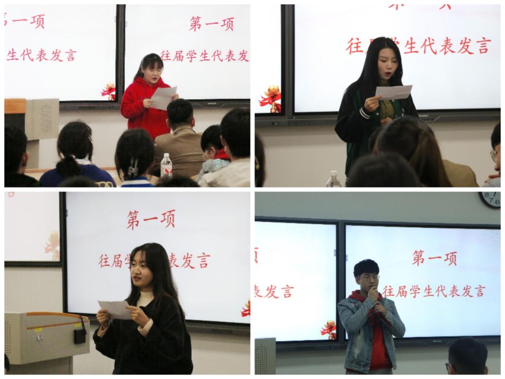 上届科协主席黎美辰发言,上一学年带领科协,通过开展形式丰富多样、内容生动有趣的科学活动,切实的增强了同学们的科研实践能力,让同学们更好的运用所学知识。