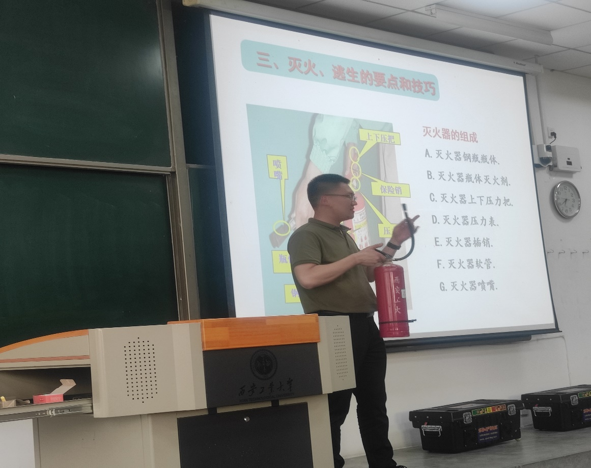 在实验室消防安全方面,孙咏轩老师重点介绍了多方面的细节问题,如危险化学品的管理、气瓶缺乏固定、消防器材配备不到位等等。他指出,这些问题若不得到及时的解决,将极易引发安全事故。在人员密集场所消防安全方面,孙咏轩老师通过阐述宿舍火灾案例和电动车防爆燃等精彩案例,让同学们对如何预防和处理突发火灾有了更加清晰的认识。