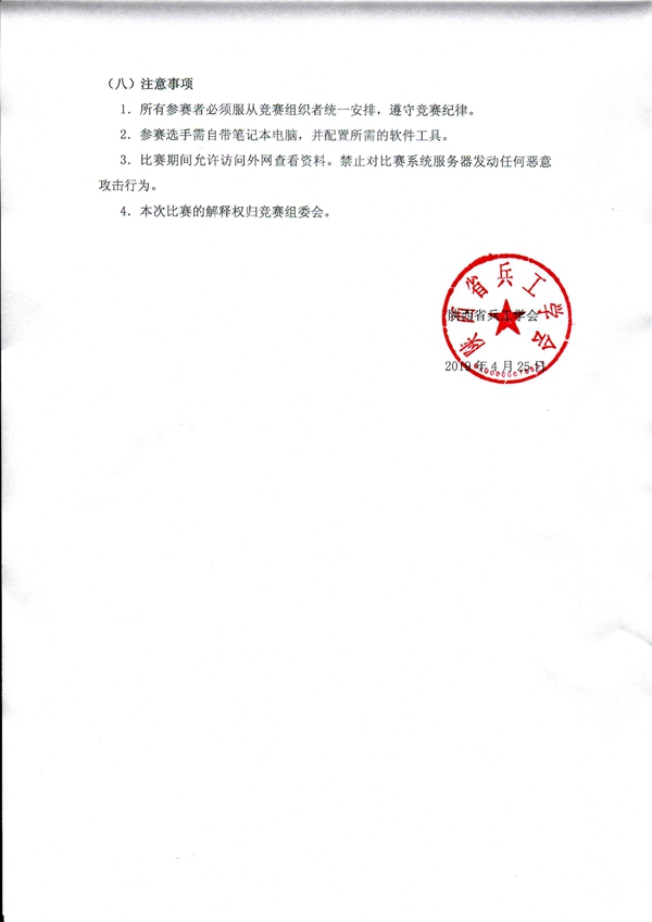 3.比赛期间允许访问外网查看资料。禁止对比赛系统服务器发动任何恶意攻击行为。