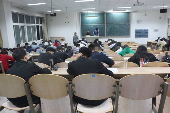 随着考试的开始,教二、教三五楼的一间间教室里只有笔在纸上沙沙作响的声音,同学们仔细审题并在答题纸上留下了自己认真思考的答案。