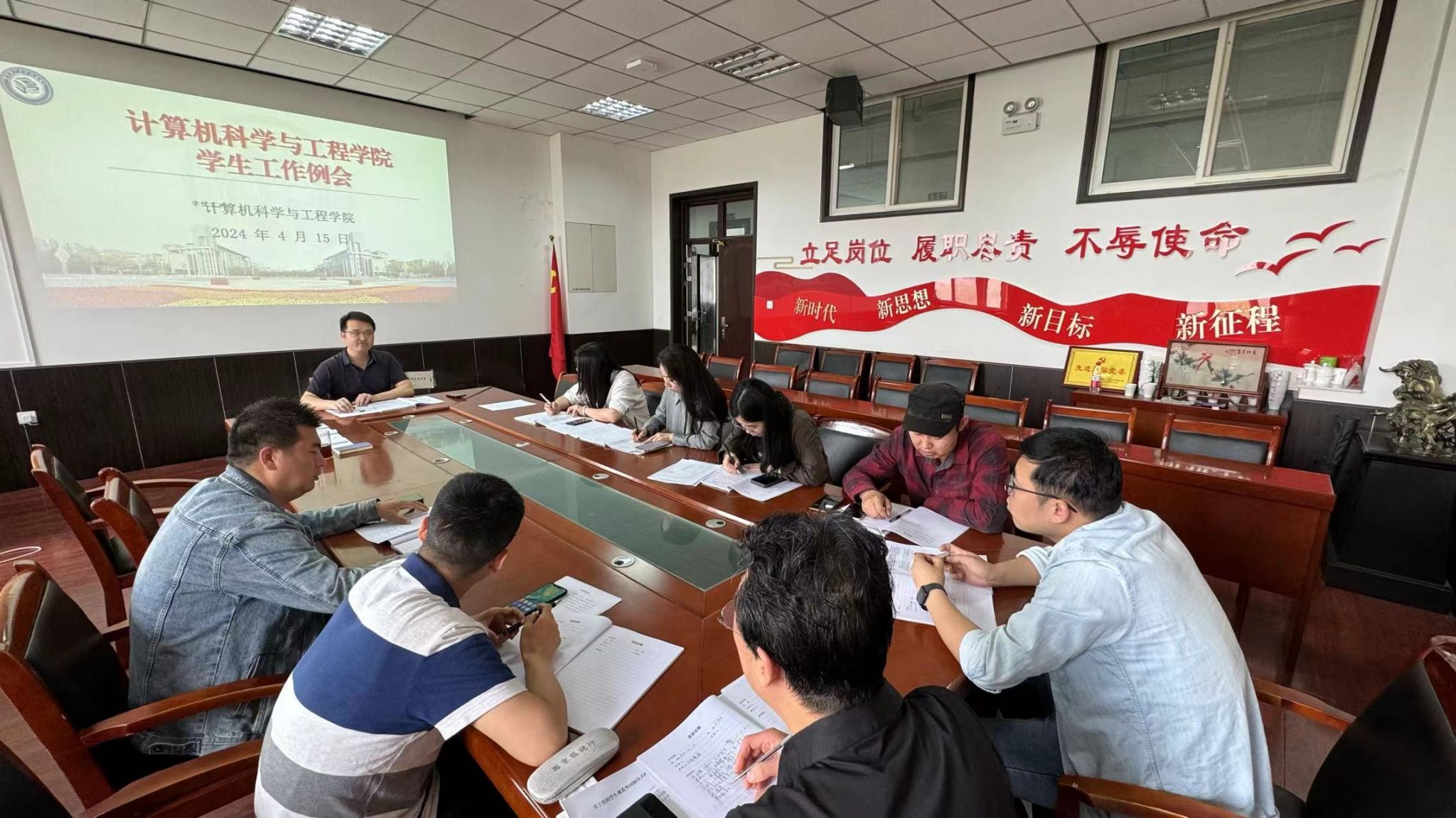 探讨会后,辅导员组长孙君对近期需要开展各项工作的任务进行通报和安排。随后,靳永军强调特殊群体员工的关注和思想教育、各类安全教育提醒、员工日常管理、七大工程、辅导员队伍建设及毕业班就业等近期重点工作,并提出具体要求。