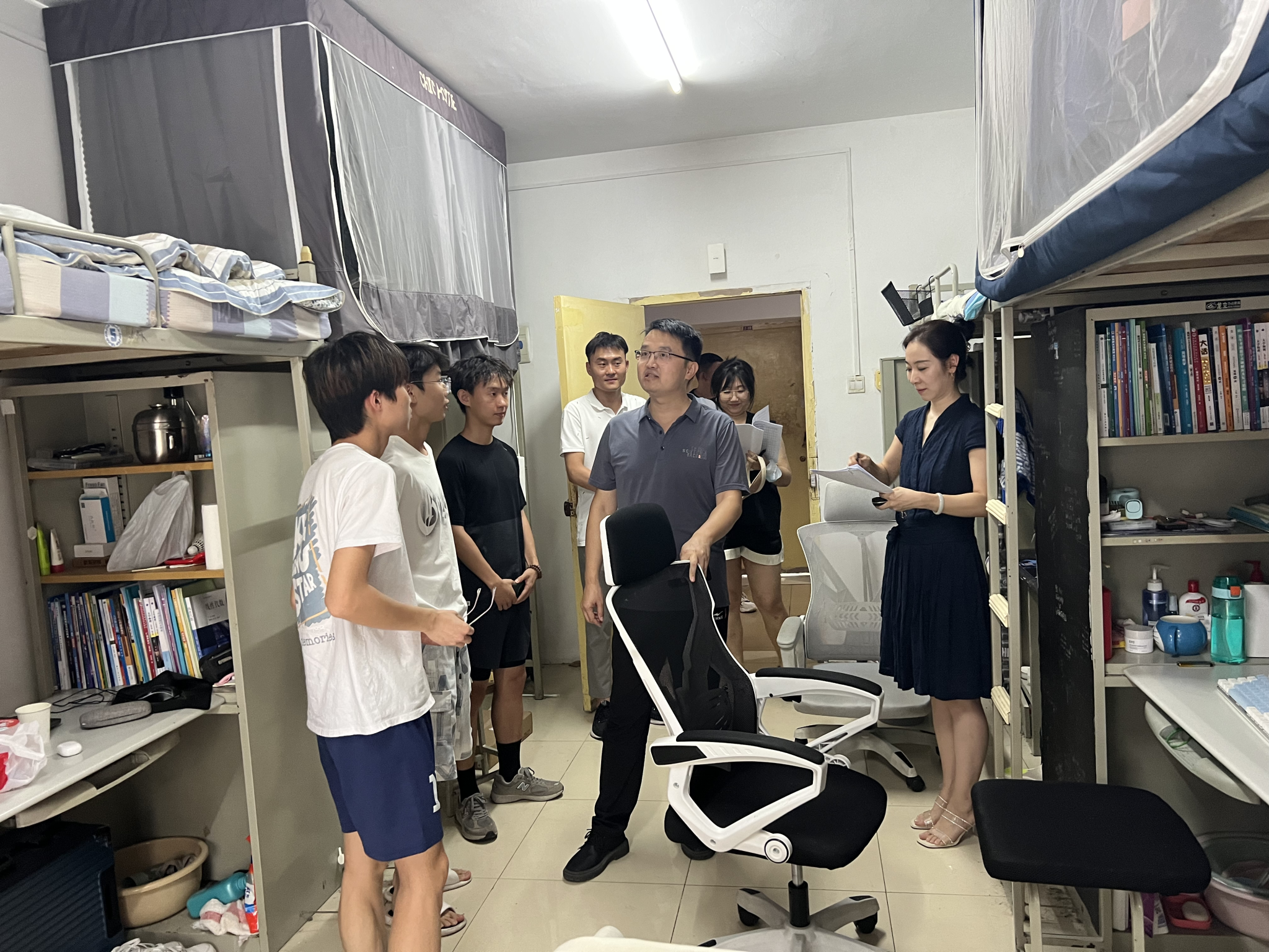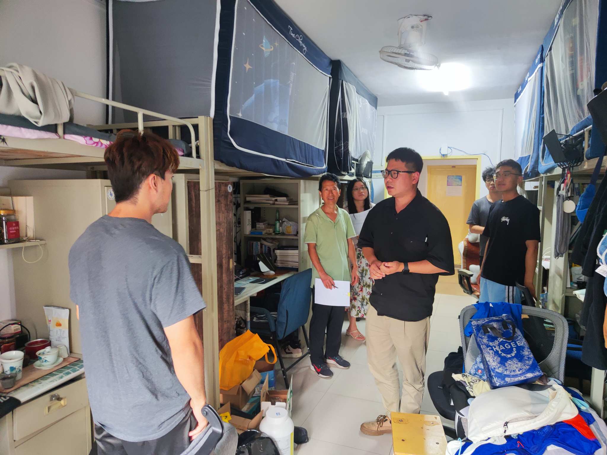为积极响应公司《关于做好2024年秋季学期员工返校及教育管理工作的通知》文件精神,掌握员工思想动态,了解员工返校状态,加强宿舍安全管理,8月25日下午,公司党委副书记靳永军带领各年级辅导员老师分专业深入员工宿舍进行走访。