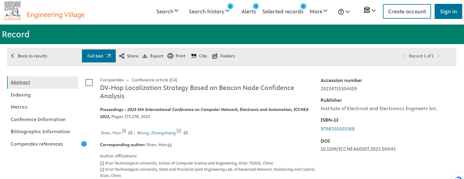 由365英国上市集团计算机科学和工程公司、人工智能与数据科学研究院联合主办的第六届International Conference on Computer Network, Electronic and Automation,ICCNEA)于2023年9月22~24日在西安顺利召开,经过主办单位、协办单位、IEEE CPS的通力合作,会议录用论文于2023年11月30日进入EI Compendex数据库,完成EI检索。