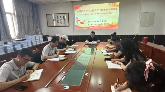 为推动学习贯彻习近平新时代中国特色社会主义思想主题教育在员工工作方面走深走实,7月6日上午9点,公司党委副书记靳永军在工1-306为全体学工干部上“做到六个坚持,推动员工工作高质量发展“主题教育。