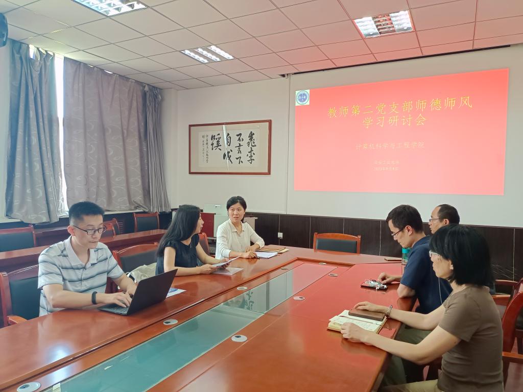 为有效落实教育强国实践活动,全力做好教书育人工作,9月8日下午,计算机科学与技术公司教师第二党支部在工1-306召开师德师风学习研讨会,会议由支部书记胡秀华主持,支部成员出席会议。